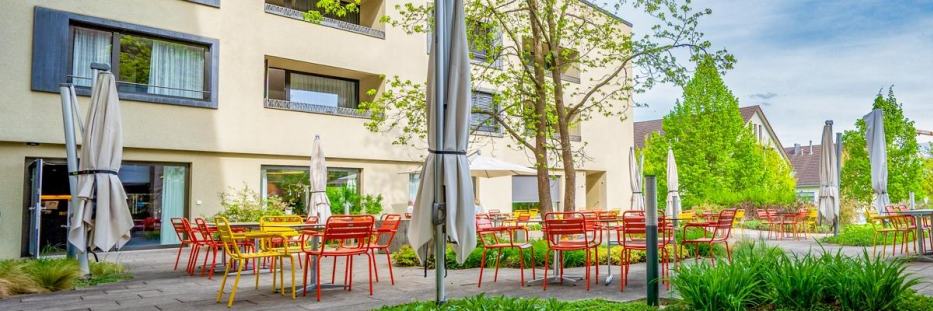 Mit 64 Pflegeplätzen bieten wir pflegebedürftigen Menschen ein Umfeld, in dem sie gemeinsam daheim sein können. Rund einhundert Mitarbeitende sind täglich für unsere Bewohnenden und deren Angehörigen da. Auf unserem Areal bieten wir zudem mit 22 Seniorenwohnungen eine selbständige Wohnform an.